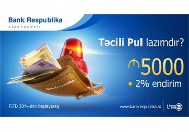 Bank Respublika nağd kreditlərə 2% endirim elan edir