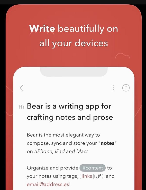 Bəzilərimiz kompüter və kağızda aldığımız qeydləri sonrasında bir araya gətirməkdə çətinlik çəkirik. Bu mövzuda köməyimizə not alma platformaları çatır. Amma gəlin qəbul edək ki, çoxumuzun ağıllı telefonlarında olan bu əlavələrdən heç də faydalı istifadə etmirik. Amma BEAR-ın digər oxşar əlavələrdən fərqli, bəzi funksiyaları mövcuddur. Bu əlavə Evernota bənzəyir, ancaq ondan daha funksionaldır. iOS və macOS əməliyyat sistemlərində dəstəklənən əlavədə not alan zaman başlıqlarda “header” istifadə edə bilər, yazıları qalın, italik, altı və ortası xəttli edə bilər, hər-hansı nota etiket əlavə edə bilər, mətnlərə foto və linklər əlavə etmək, eyni zamanda PDF və JPEG daxil olmaqla çeşidli formalara sala bilərsiniz.