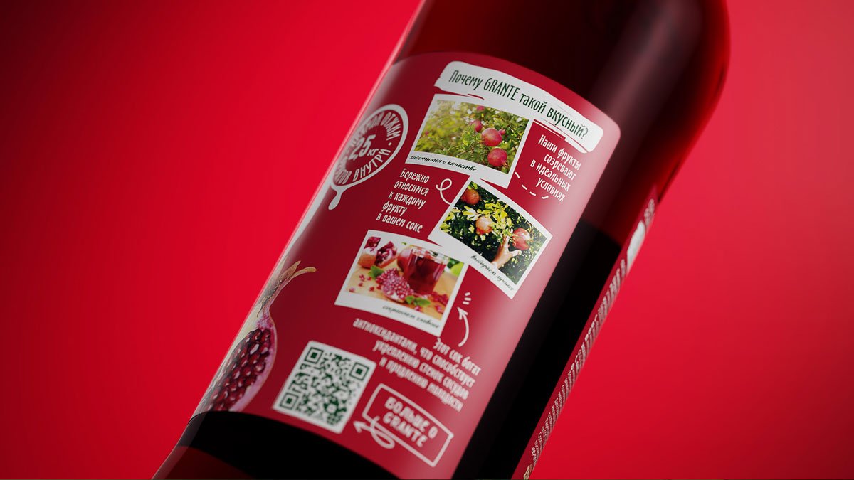 “Grante”nin öz əkinlərində diqqətlə yığılmış, yetişmiş təbii meyvələr qablaşdırmanın vacib bir xüsusiyyətidir. “Grante” üçün ənənəni qorumaq və əlaqəli olmaq vacibdir, buna görə dizayn texnikası düz yaylama texnikasını istifadə edib. Təbii meyvələrin canlı, bir qədər dağınıq həyatı markanın səmimiliyini vurğulamaq üçündür.