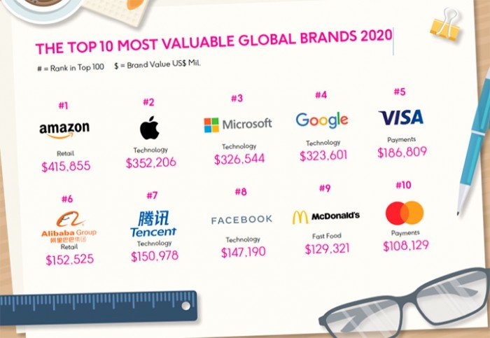 Xatırladaq ki, dünyanın ən bahalı brendləri reytinqində ilk sıralamada bir dəyişiklik yoxdur. Belə ki, lider yenə Amazon ($415,9 ), Apple ($352,2), Microsoft ($326,5) və Google ($323,6) olub.