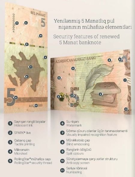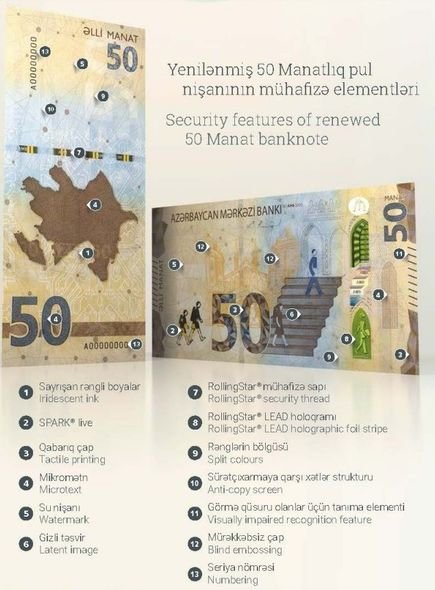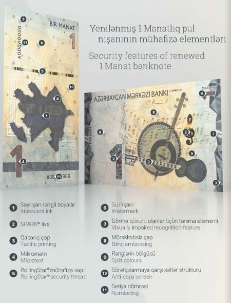 Məlumata görə, hazırda Azərbaycan Mərkəzi Bankı tərəfindən yenilənmiş 1, 5 və 50 manatlıq pul nişanlarının tədavülə buraxılmasına başlanılır. Yenilənmiş 1, 5 və 50 manatlıq pul nişanları hazırda tədavüldə olan eyni nominallı köhnə pul nişanları ilə bərabər hissə-hissə tədavülə buraxılacaqdır.