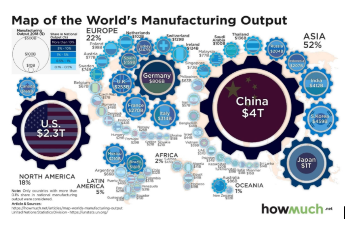 www.howmuch.net internet səhifəsinin yayımladığı statistikaya nəzər yetirsəniz, nə demək istədiyimi aydın görə bilərsiniz. Dünya sənayesinin 30%-nə yaxınını özündə cəmləşdirən Çinin, tədarük zəncirinin digər iştirakçıları olan ölkələr üçün çox ciddi bir təhdid olduğunun şahidi oluruq.