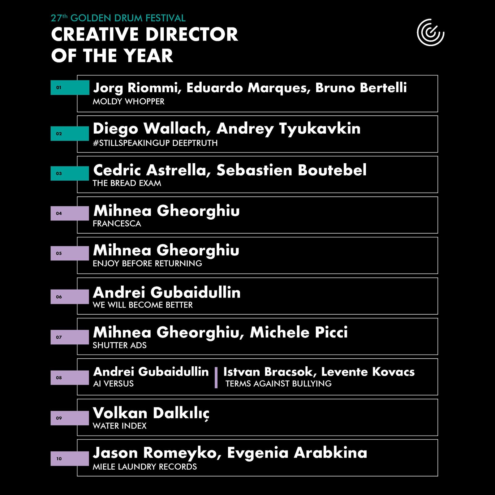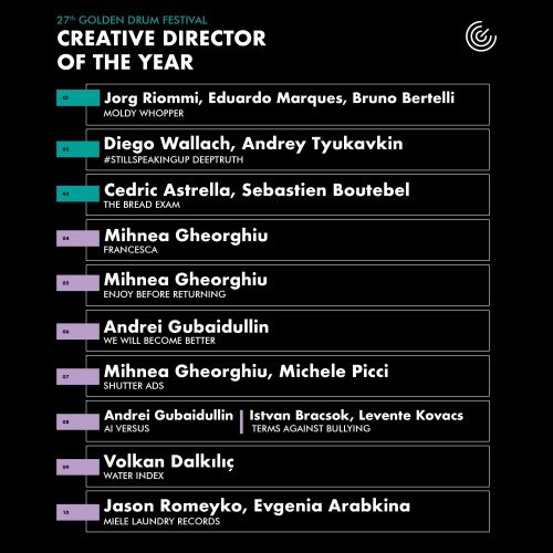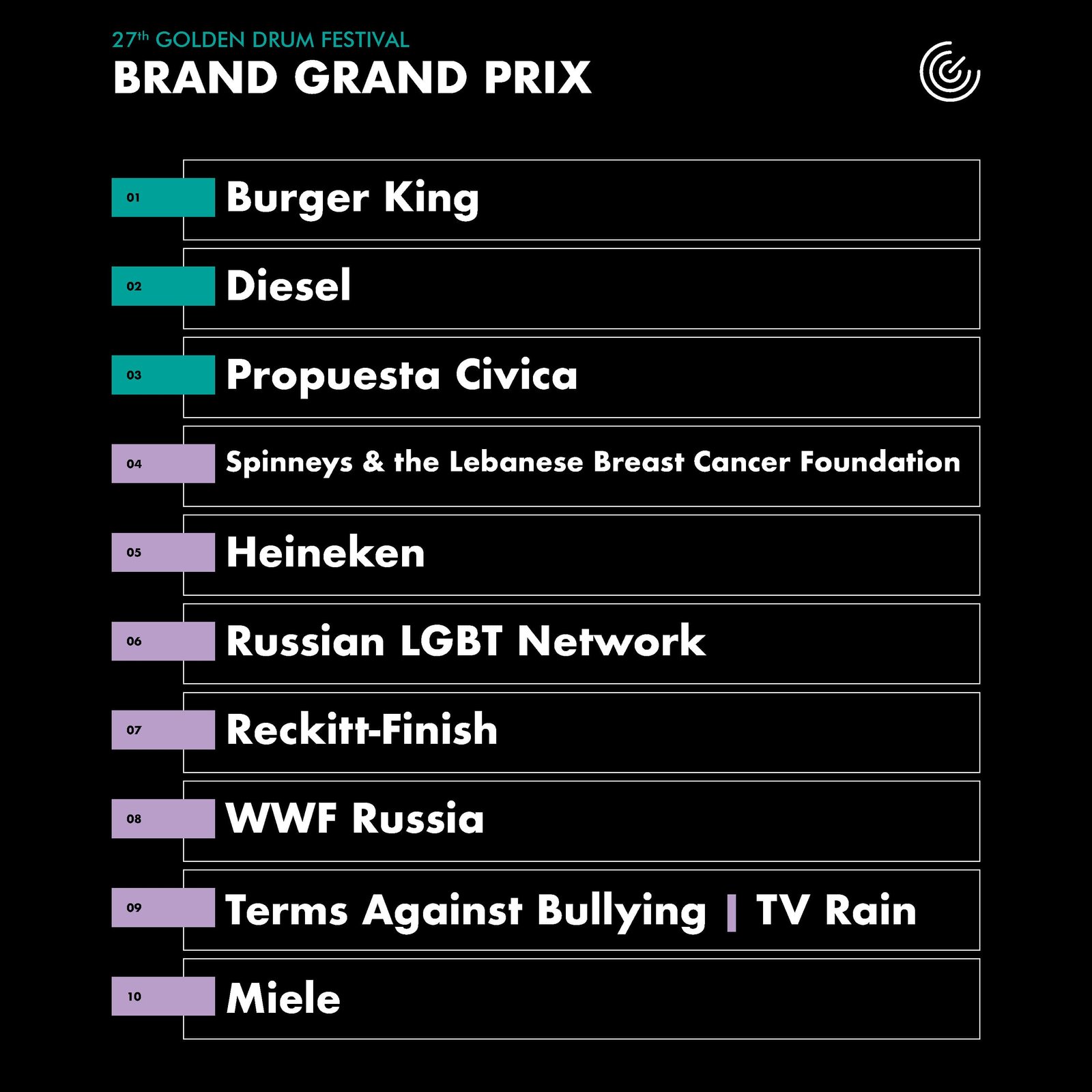 Qran Prisi qazanaraq 27-ci festival nəşrində iz buraxan ən yaxşı marka “Burger King” 6 qızıl, 4 gümüş və 2 bürünc mükafata layiq görülüb. "Moldy Whopper" kampaniyasının rəhbərləri Jorg Riommi, Eduardo Marques və Bruno Bertelli isə “İlin ən yaradıcı rəhbərləri” seçilib.