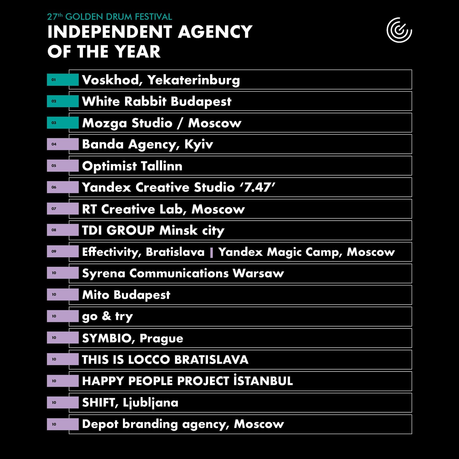 Facemark rəsmi mənbəyə istinadən məlumat verir ki, Milandan olan “Publicis Italy” ardıcıl olaraq ikinci il “İlin agentliyi” adına layiq görülüb. “İlin ən müstəqil agentliyi” mükafatı isə Rusiyanın Vosxod agentliyinə təqdim olunub.