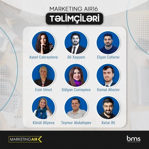 BMS - Facemark əməkdaşlığının ən iri həcmli təlim layihəsi olan "Marketing AIR" Azərbaycanın ilk praktiki marketinq təlimidir. 2012-ci ildən 15 dəfə keçirilən "Marketing AIR" təlimi bu il 22 noyabr tarixində başlayacaq. 6 moduldan ibarət olan təlimin tədrisi 9 təlimçi tərəfindən həyata keçiriləcək.