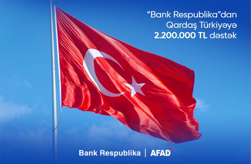 Qardaş Türkiyə xalqının yanında olduğunu bəyan edən Bank Respublika, zəlzələdən zərər çəkmiş şəxslərə dəstək məqsədilə Türkiyənin Təbii Fəlakət və Fövqəladə Hallar Agentliyinə (AFAD) – 2,2 milyon TL (200.000 AZN) məbləğində pul vəsaiti köçürdü.