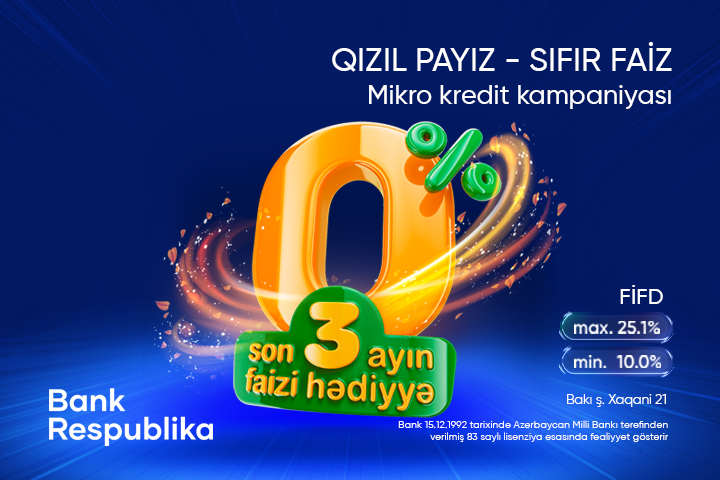 Daim iş adamlarının yanında olan “Bank Respublika”, aqro və mikro biznes sahibləri üçün “Qızıl Payız - Sıfır Faiz”adlı mikro kredit kampaniyasına start verir!