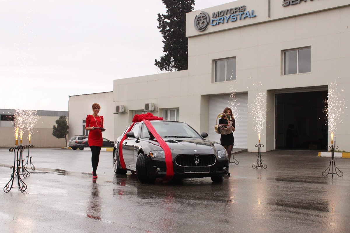 Dekabr ayının 30-da Crystal Motors Servis Mərkəzində Azərbaycanda ilk Maserati avtomobilinin rəsmi sahibinə təqdimatının təntənəli mərasimi keçirildi. Arabir qara korpusu ilə parıldayaraq, italyan gözəli hesab edilən Maserati Quattroporte iki xanım-modelin müşayiəti ilə həyətdə görsəndi. Onlar bu eksklüziv avtomobilin xoşbəxt sahibinə hədiyyələr təqdim etdi. Tamahəngli idman lüks klasslı sedan qırmızı lent ilə bağlanmış və qalın bantla bəzədilmişdi. Lenti kəsdikdən sonra, avtomobilin sahibi qırmızı dərili salonda əyləşib, bu möhtəşəm avtonun sahiblik hüququna yiyələndi. Mərasim bayram atəşfəşanlığı ilə yekunlaşdı.