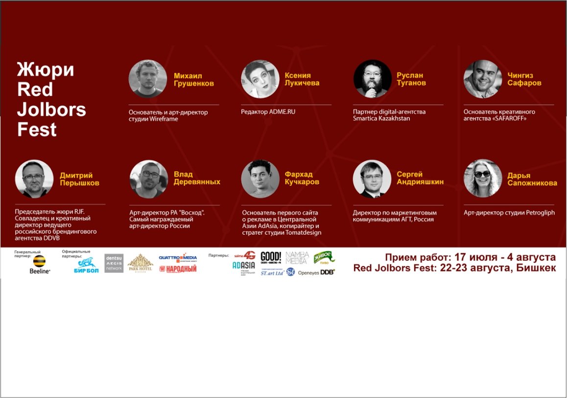Mərkəzi Asiyada keçirilən yeganə “Red Jolbors Fest” reklam festivalının münsiflər heyətinə reklam və marketinq sahəsindən Rusiya, Qazağıstan və Azərbaycandan olan mütəxəssislər daxildir.