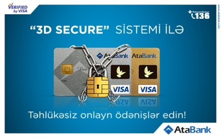 Bu üsul təhlükəsizliyi təmin etməklə yanaşı, internet ödəmələrini daha cəlbedici edir. Xidmət pulsuzdur. “MasterCard” sahibləri üçün isə “3D Secure” texnologiyası yaxın zamanda istifadəyə veriləcək. 1993-cü ildən fəaliyyət göstərən "AtaBank" ASC Azərbaycanın ən böyük kommersiya strukturlarından biridir. Bu gün "AtaBank" ASC yüksək texnologiyalı universal bank olmaqdadır. Bank korporativ və fərdi müştərilərə tam xidmətlər spektrini təqdim edir.