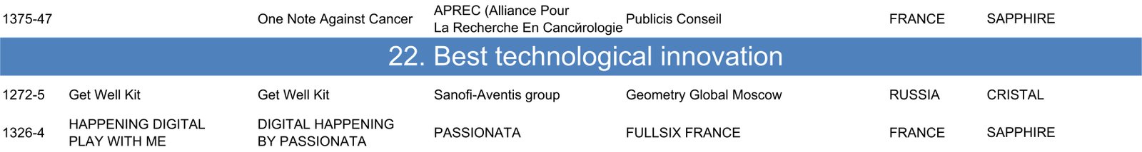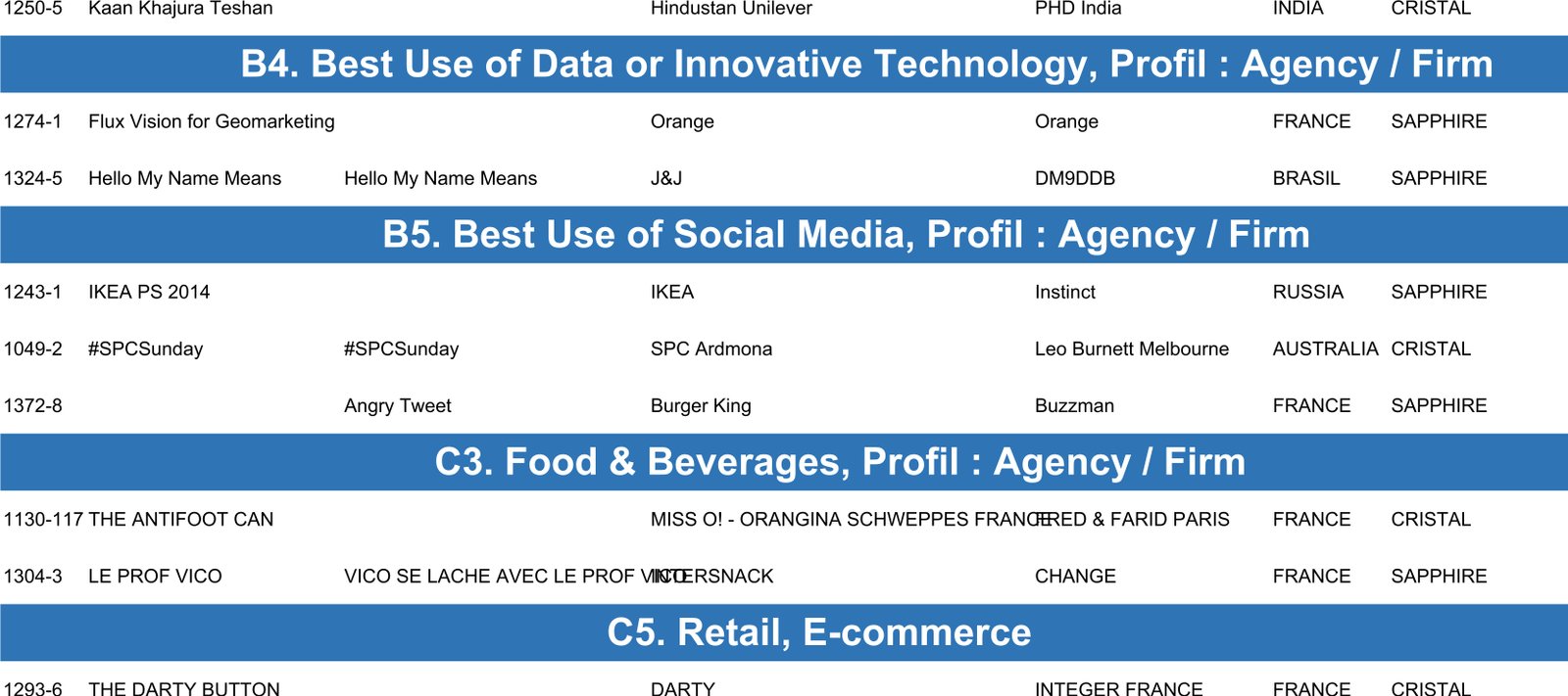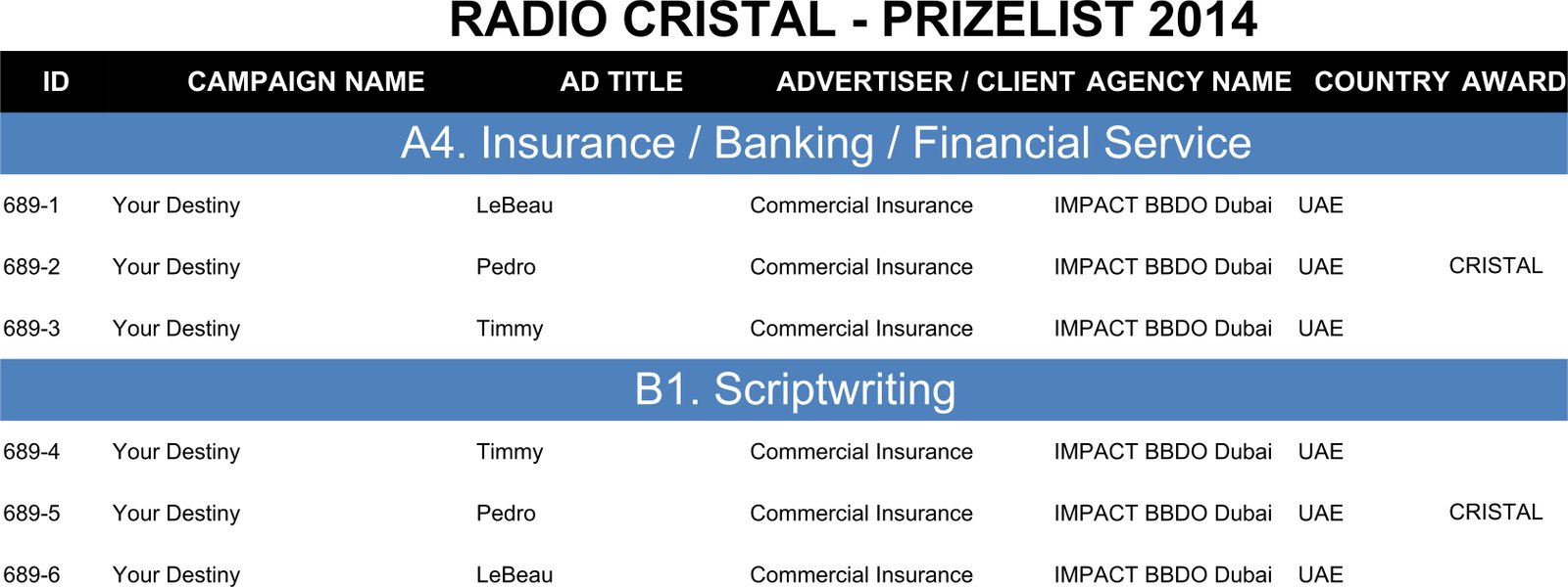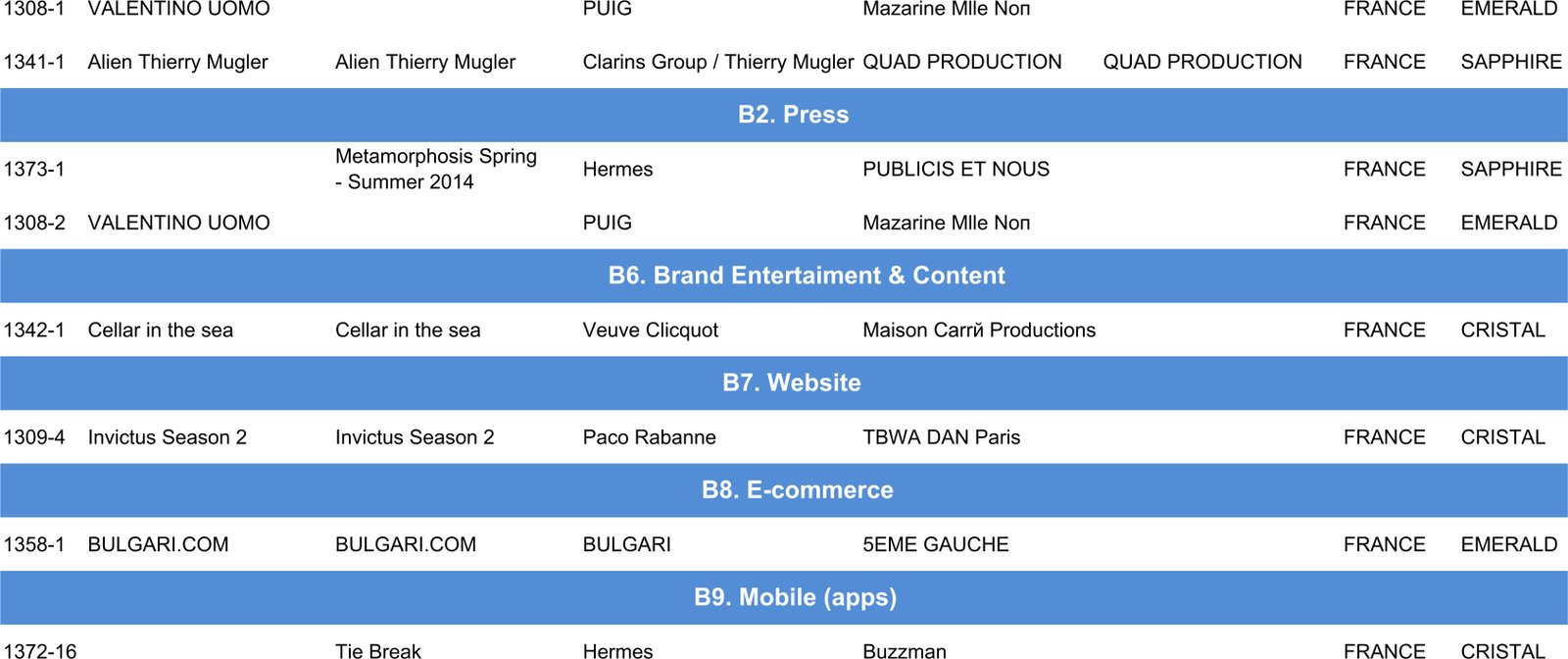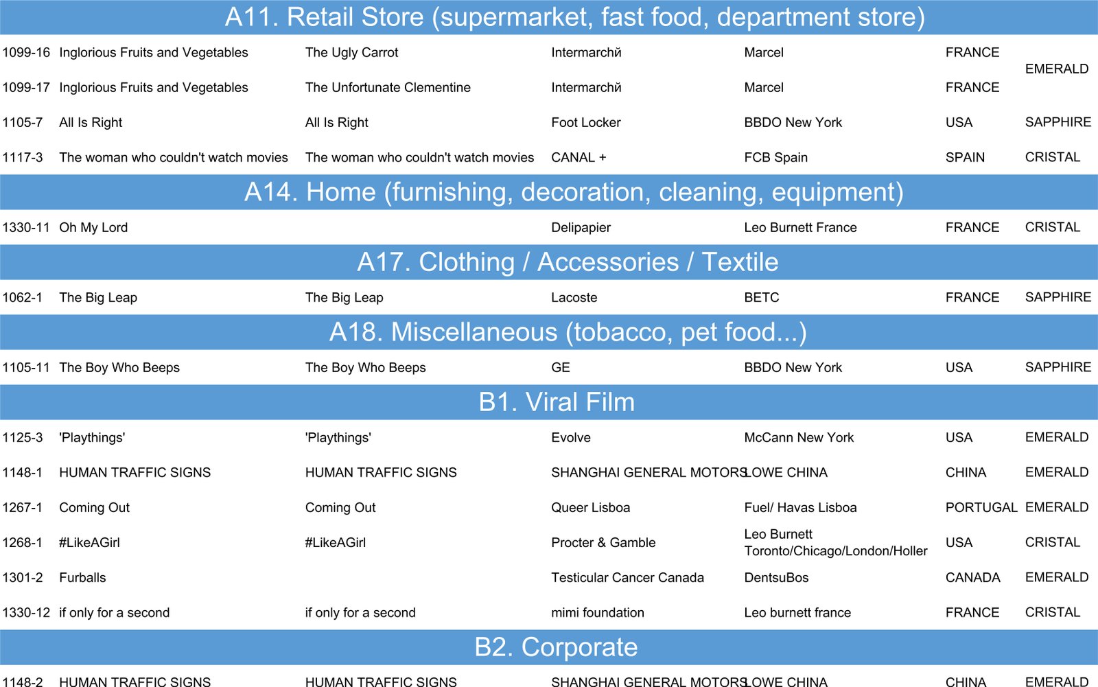 “Cristal Festival”ın sonuncu günündə son mükafatçılar da açıqlandı. Sonuncu gündə Marketing innovasiya, Radio, İstehlakçı Marketinqi, Film, Lyuksvə digər bölmələr üzrə Cristal (qızıl), Sapphire (gümüş) və Emerald (bürünc) mükafatçılar mükafatlarını aldılar.