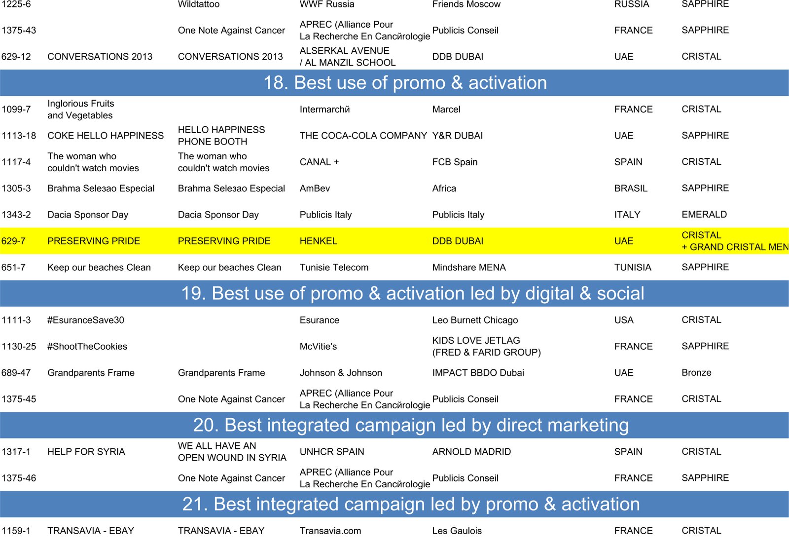 İSTEHLAKÇI MARKETİNQİ YAXIN ŞƏRQ VƏ ŞİMALİ AFRİKA GRAND CRİSTALI: kampaniya - Preserving Pride - sifarişçi - Henkel, agentlik - DDB Dubay, BƏƏ
