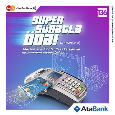 “AtaBank” ASC yeni "MasterCard" tipli kartlarını "MasterCard Contactless" funksionallığı ilə təmin edib. Bankın tərəfdaşlar şəbəkəsində quraşdırılmış POS-terminallar kontaktsız kartların qəbulu üzrə proqramlaşdırılıb və bu cür kartları qəbul etməyə hazırdırlar.