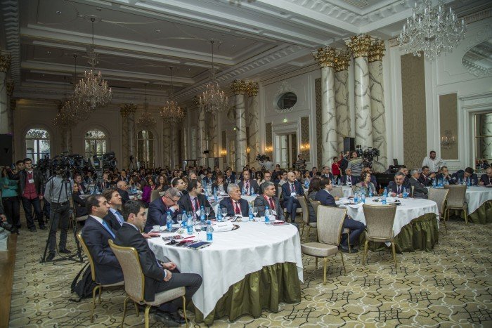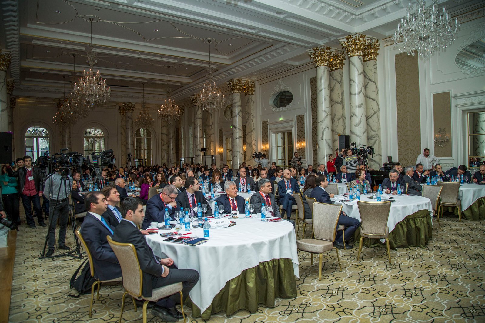 Tədbirdə çıxış edən Azərbaycanın iqtisadiyyat və sənaye nazirinin müavini Sevinc Həsənova ölkədə son 10 il ərzində sənayenin inkişafı ilə bağlı görülən işlərdən danışıb. Onun sözlərinə görə, bu dövr ərzində Azərbaycan iqtisadiyyatı real ifadədə 3, dövlət büdcəsi – 13 dəfə artıb, ölkəyə yatırılan investisiyaların həcmi 177 mlrd. dollar olub ki, bunun da 123 mlrd. dolları qeyri-neft sektoruna yönəldilib: "Dünya bazarında xam neftin qiymətinin aşağı enməsi, onun ortamüddətli dövrdə 50-60 dollar səviyyəsində proqnozlaşdırılması, bu fonda dolların bahalaşması, Azərbaycanın əsas ticarət tərəfdaşlarının milli valyutalarının ucuzlaşması manata təzyiqi artırıb, orta və uzun müddətdə ölkə iqtisadiyyatını qorumaq üçün qabaqlayıcı tədbirləri zəruri edir".
