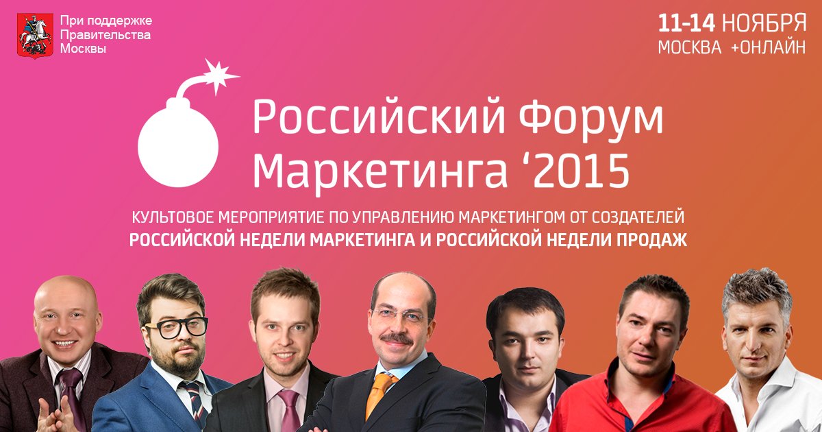 Rusiya marketinqində önəmli tədbir olan Rusiya Marketinq Forumu 11-14 Noyabr tarixlərində Moskva şəhərində keçiriləcək. Forum 80 spiker, 350-dən çox media tərəfdaşın və 1500-dən çox iştirakçıların toplaşdığı meydan olacaq. Həmçinin, dünya üzrə onlayn yayımlanacaq. Forum haqqında detallı məlumat üçün bu linkə daxil ola bilərsiniz: http://ptf.su/go/mw. 4 gün davam edəcək forumda məhsuldar iştirakınız biznesinizə güclü təkan olacaq və şirkətinizin marketinq fəaliyyətini keyfiyyətli səviyyəyə gətirəcəkdir.