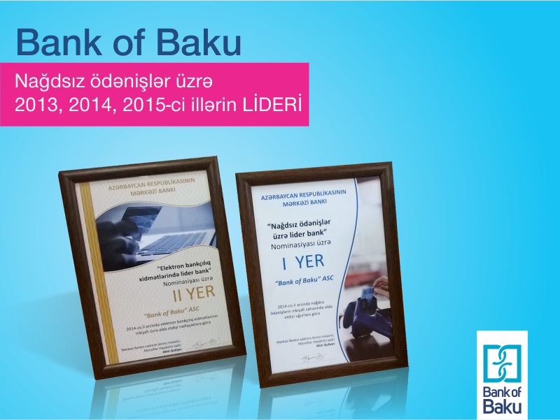 2013-cü ildən etibarən, Azərbaycan Respublikası Mərkəzi Bankı tərəfindən keçirilən müsabiqədə “Nağdsız Ödənişlər üzrə Lider Bank” nominasiyasında Bank of Baku liderliyini qoruyub saxlamaqdadır.