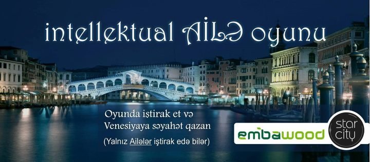 Xatırladaq ki, Embawood şirkəti Star City kolleksiyasını geniş kütlə arasında tanıtmaq üçün PR kampaniyası keçirməyi planlaşdırmışdır. Bu kampaniya Intellektual Ailə oyunu çərçivəsində baş tutur və şirkətin keçirdiyi bu kampaniyanın informasiya dəstəyi kimi Facemark çıxış edir. Embawood ilk intervyu günü keçirmişdir və İntervyuda bir birindən maraqlı və fərqli AİLƏLƏR iştirak etmişdir. Bu oyunda iştirak edəcək ailələr bir neçə turlardan keçərək super hədiyyə olan Venesiyaya istirahət turu qazanacaqdır.Əgər sizdə Venesiyada istirahət etmək istəyirsinizsə, tələsin! İştirak edən hər kəsə uğurlar.