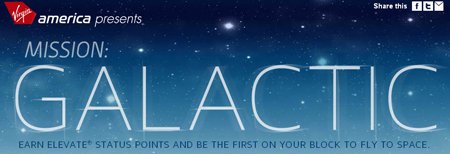 "Ən yüksək sərnişin statusunu almaq üçün Qalaktik Virgin America, Virgin Atlantic və Virgin Australia təyyarələriylə uçun !’’ Layihənin saytında bildirilir ki, ‘’suborbital kosmik uçuş bileti qazanmaq üçün 7 avqust 2013-cü ilə qədər böyük miqdarda sahə qazanın" . Belə biletin dəyəri $200 mindən çox təşkil edəcək. Həmçinin bu siyahıda ikinci yer tutacaq şəxsdə, əliboş qayıtmayacaq və oxşar reysdə, antiqravitasiya şəraitində səyahət etmək şansı əldə edəcək.