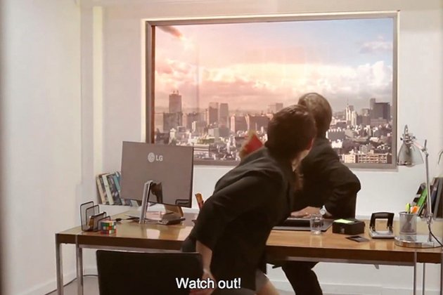 Marka yeni UltraHD televiziyasını kamera zarafatı ilə təqdim edir. LG yeni kampaniyası çərçivəsində "dünyanın sonunu", böyük bir meteoritin yer üzünə düşməsini təşkil edərək mümkünlüyün bütün sərhədlərini keçməyə qərar verdi. İşə düzəlmək üçün gəldiyinizi təsəvvür edin, oturacağ sakitcə oturursunuz və bir anlıq dünya sizin gözləriniz önündə dağılmağa başlayır. Hər şey elə real görsənir ki, baş verənlərin bir qurğu olduğunun fərqinə belə varmırsınız.
