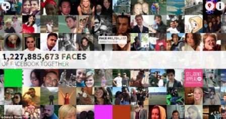 Dünyanın ən böyük sosial şəbəkəsi “Facebook” “Faces of Facebook” proqramı yaradıb. Bir səhifədə şəbəkədə qeydiyyatdan keçmiş hər kəsin fotosunu görmək olar. Beləcə ilk baxışdan anlaşıqsız rəngli ekran milyarddan çox istifadəçinin profil fotolarından ibarətdir. Fotolar xronoloji ardıcıllıqla yerləşdirilib. Ekranda həm də şəbəkə istifadəçilərinin hər saniyə dəyişən sayını görmək olur. Hazırda “Facebook”da 1 278 840 000 adam qeydiyyatdan keçib.