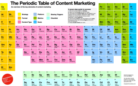 "eConsultancy" agentliyinin kontent üzrə direktor Kris Leyk (Chris Lake) ənənəvi Mendeleevin elementlər cədvəli ilə ilhamlanaraq kontent-marketinqi üçün oxşar bir sistemi yaratmağa qərara gəldi. Onun əməyin nəticəsi olaraq "eConsultancy"nin saytında yerləşdirilən "Kontent-marketinqin dövri cədvəli"dir.