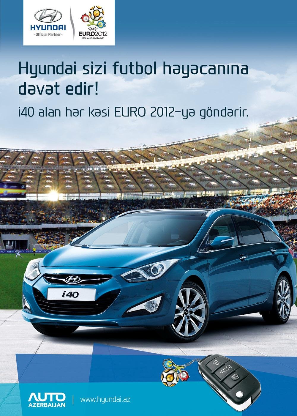 Auto Azərbaycan kampaniyası Evro-2012 oyunlarını tamaşaçı qismində izləməyə 20 nəfəri göndərəcək. Dörd ildən bir keçirilən bu oyunlarda həyəcanı ekran vasitəsilə deyil, canlı olaraq stadionda hiss etmək may ayında Hyundai i40 markalı avtomobili alanlara qismət olacaq. Futbol yarışları  üzrə 14-cü Avropa çempionatı təkcə ən məşhur və əfsanəvi rəqib komandaların yarışı olmayacaq. Artıq tarixində üçüncü dəfə eyni zamanda iki ölkə-Polşa Ukrayna çempionatı öz ölkələrində qəbul edəcək.