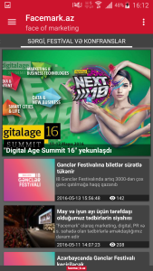 - Tətbiq avtomatik olaraq facemark.az saytı ilə əlaqələndirilib. Yəni sayta əlavə edilən istənilən yazı həmin an tətbiqdə də görünür. Yaxında istəsəniz yeni əlavə olunmalarla bağlı ekrana bildiriş də alacaqsınız. Hazırda iş gedir.
