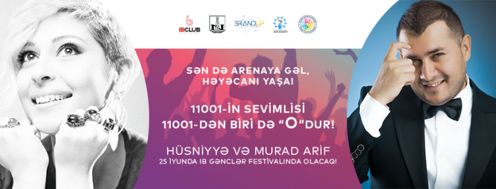 11001 gəncin bir yerdə öyrənib əylənəcəyi IB Gənclər Festivalına 22 gün qalmış Festivalın aparıcıları bəlli oldu. Ölkənin tanınmış simaları Hüsniyyə Məhərrəmova və Murad Arif gənclərə festival həyəcanını ötürməyə çalışacaqlar. Festivalın digər məşhur qonaqları yaxın günlərdə elan olunacaq. Xatırladaq ki, 25 iyun tarixində reallaşacaq Festival IB Club Gənclər Mərkəzi və Neftçi PFK-nın təşkilatçılığı ilə baş tutacaqdır.