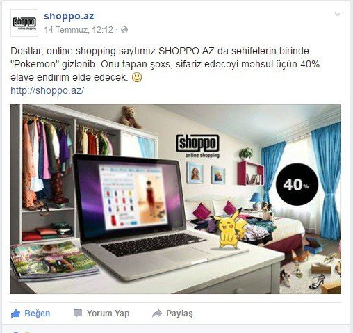 Buna aid iki kontenti nümunə göstərəcəm. İlki ‘Pokemon Go’ haqqındadır. Hansı ki, Digital bazara baxanda bundan satışa istiqamətlənmiş şəkildə mənfəət götürən nadir paylaşımlardan biridir.