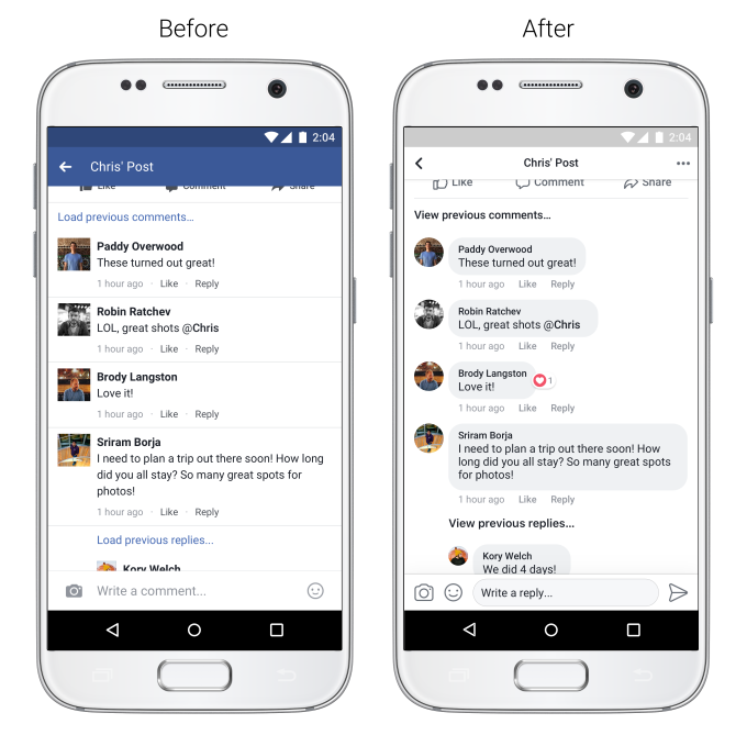 Facebook rəyləri də artıq Messenger-də olduğu kimi baloncuqlar şəklində olacaq. Beləliklə istifadəçilər həm daha rahat başa düşülə bilən, həm də qrup mesajlarındakına oxşar bir dizaynla qarşılaşacaqları üçün daha rahat əlaqədə ola biləcəkləri bir dizaynla qarşılaşacaqlar.